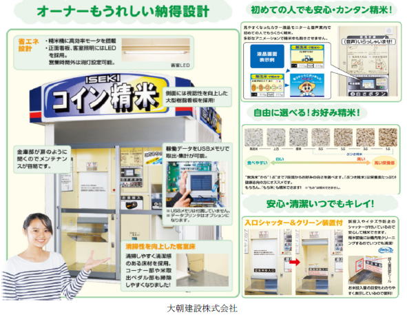 平成15年10月より営業中。 (24時間営業) 場所:北広島町大朝支所近く 平成15年10月より御利用頂いてきました精米機、令和3年6月17日、最新型精米機と入替ました。 夜間は消灯していますが入室すると自動点灯、手順は案内音声に従って操作下さい。